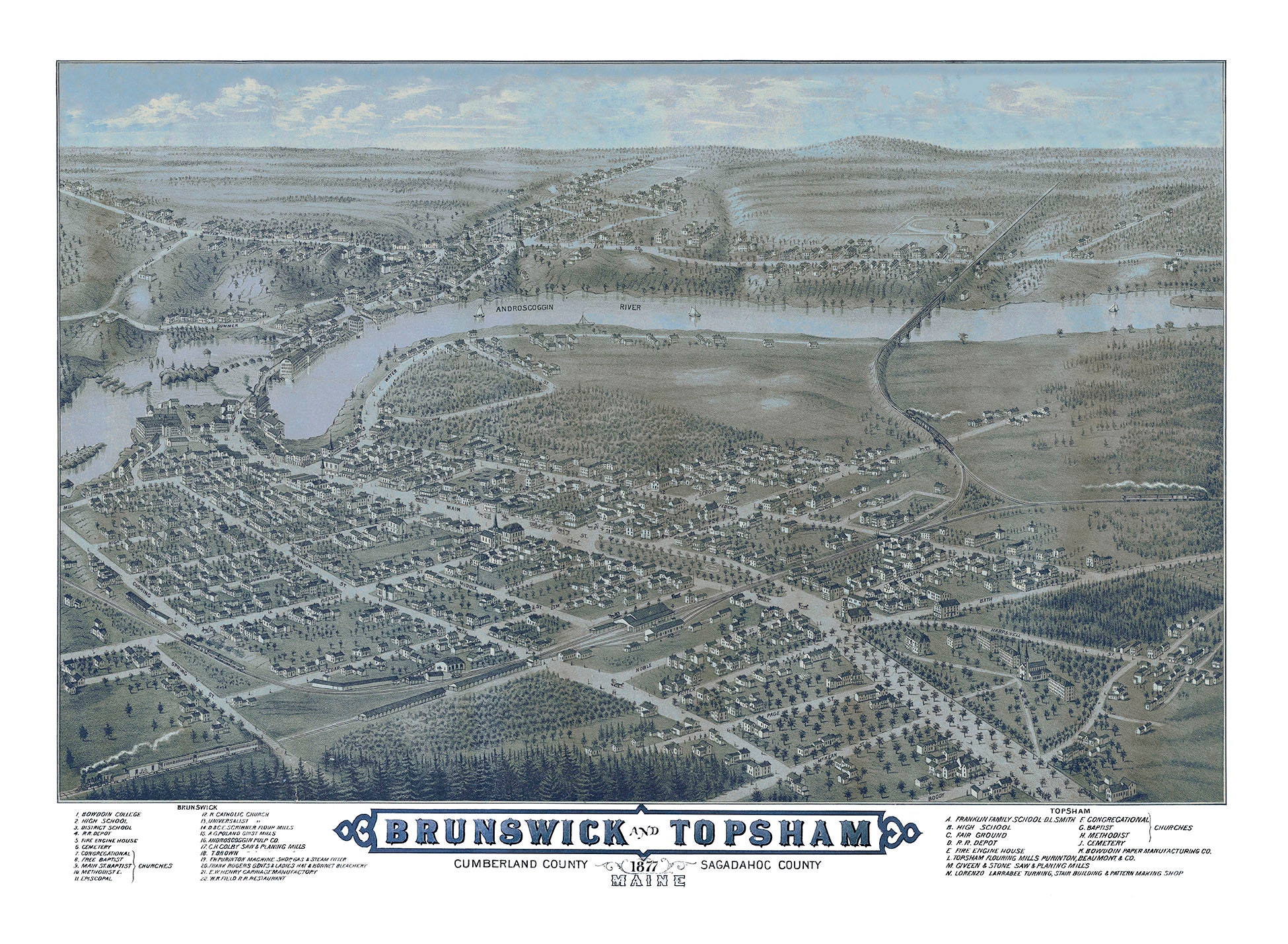 Brunswick Topsham Maine In 1877 Bird S Eye View Map Etsy